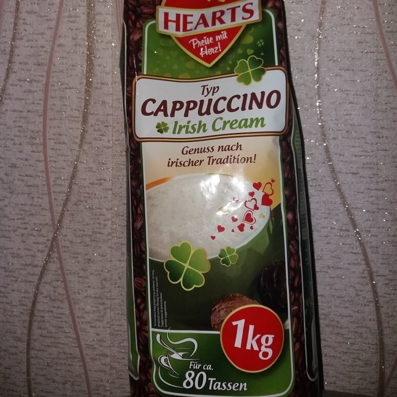 Hearts Cappuccino Irish Cream – це розчинний капучіно зі смаком ірландського лікеру. "Ірландські вершки" - вершковий лікер на основі ірландського віскі, вершків та інших інгредієнтів. Найніжніший капучино, в якому помітні акорди шоколаду, лікеру, вершків та тонкі ноти ванілі.