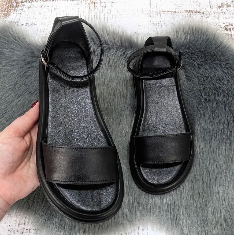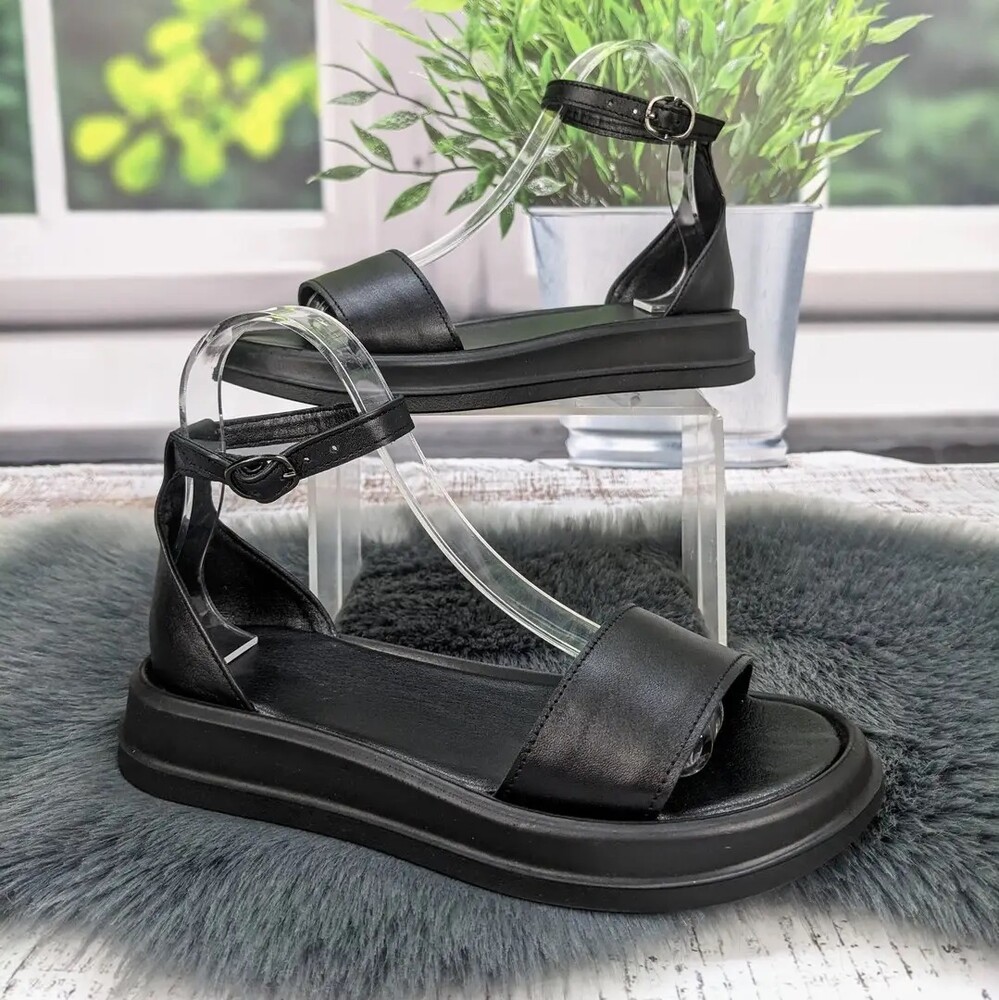 Босоніжки жіночі шкіряні на об'ємній підошві.