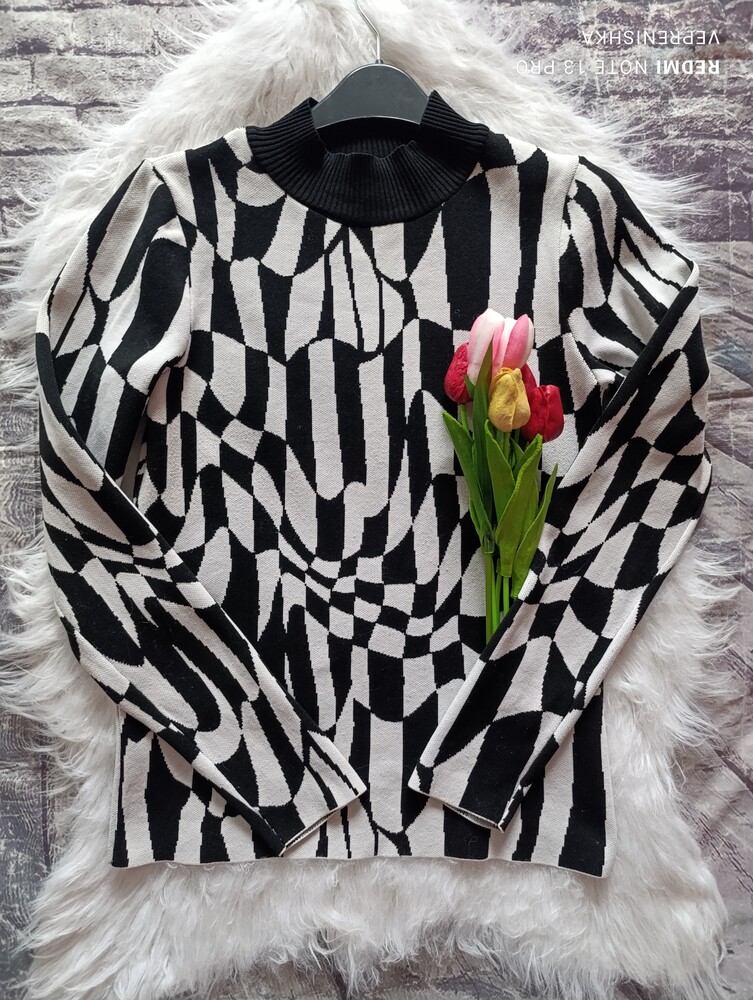 Заміри: ПОГ 40см, тягнеться до 52см; довжина від плеча 58см; плечі 33.5см; рукав 61см.