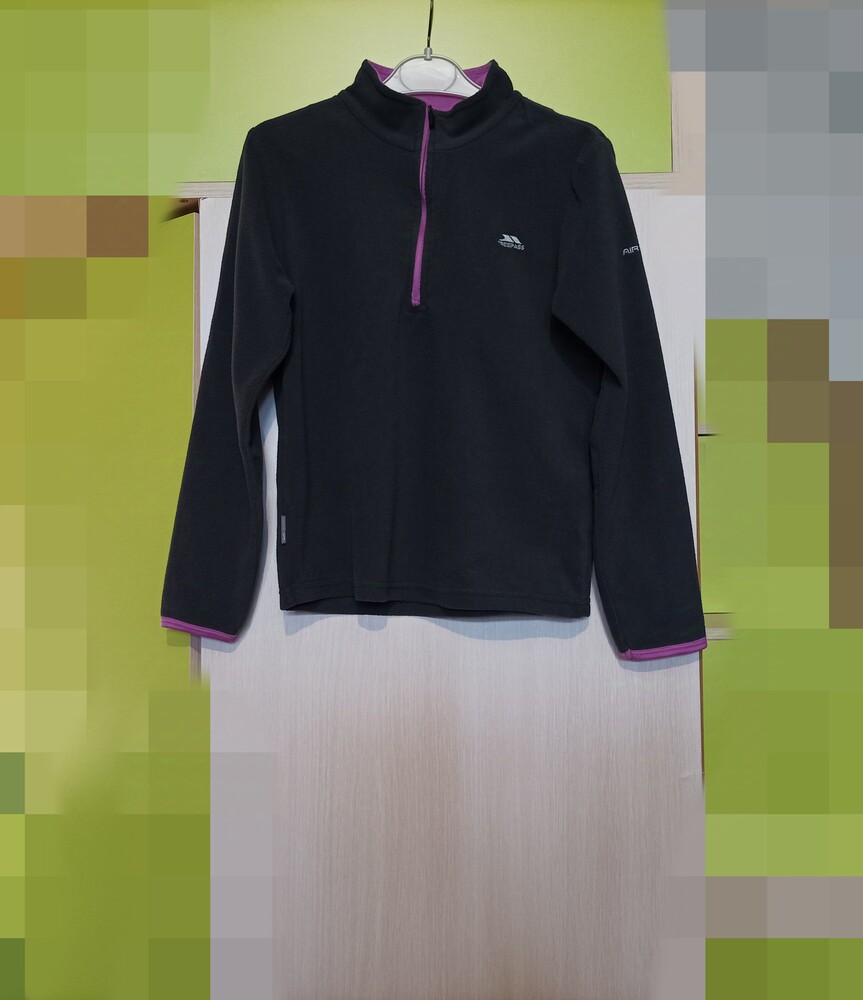 Флисовая кофточка 9/10 лет в очень хорошем состоянии.Замеры:пог 42 см, плечи 36 см, длина рукава 52 см, длина изделия 51 см.Цвет тёмно серый.