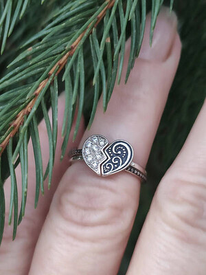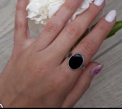 Відкрита вінтажна, каблучка, кільце, вставка чорне скло