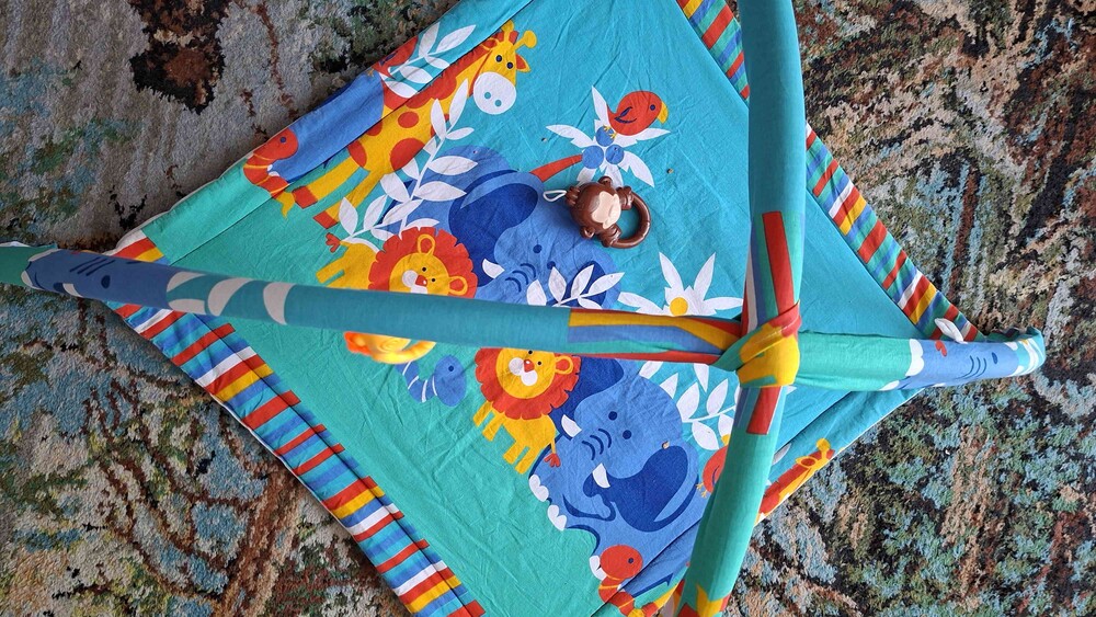 игровой коврик с дугами и 2 погремушками. ещё 2 погремушки утеряны.