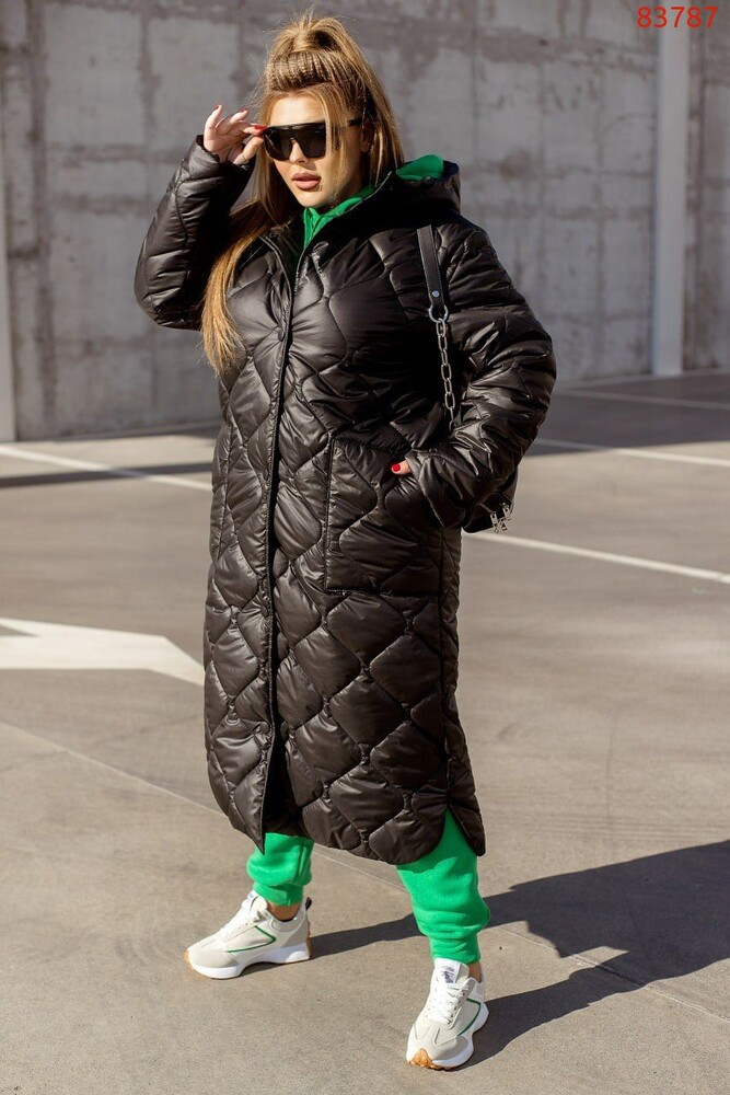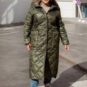 Довга стьобана куртка з пришивним капюшоном, високим коміром і довгими рукавами. Такий варіант курток майорить на стильних фешн показах вже другий рік та досі не втрачає своєї популярності. Куртка застібається на ряд кнопок спереду. Ми додали також накладні кишені на основній частині виробу. Така куртка легко поєднується з будь-якими елементами гардеробу, а також в ній буде однозначно тепло, адже ми додали наповнювач синтепон 200 та силікон. Доповніть образ високими черевиками та сумочкою і сміливо вирушайте у справах.