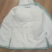 Довжина 75 см НОГ 47 см Рукав 55 см. Капюшон не знімається, всередині куртки хутро. По боках знизу є кнопки . Куртка кольору м'ята, трохи темніше ніж на фото. Стан на 5- по 5 балах. В носці зовсім недовго. Дуже тепла та зручна.