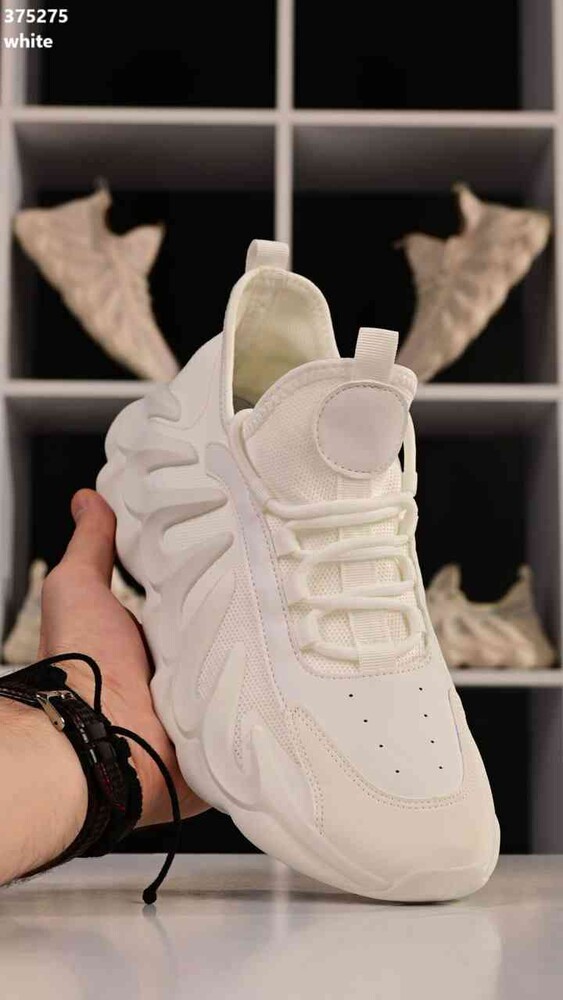 Чоловічі білі дихаючі кросівки текстиль стрейч.