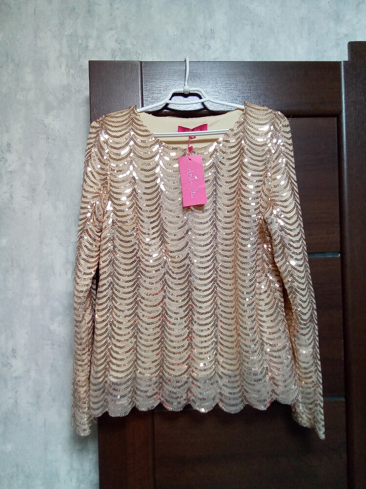 Новая брендовая красивая кофточка в паетках р.16. Замеры ПОГ -55, ПОБ-58, ДИ-65, рукав-63, состав ткани полиэстер. Оплата на карту, за доставку при получении, УкрПочтой скидка 3%, упаковка в подарок. Приглашаю посетить мою страничку, выставлено много фирменных новых лотов.