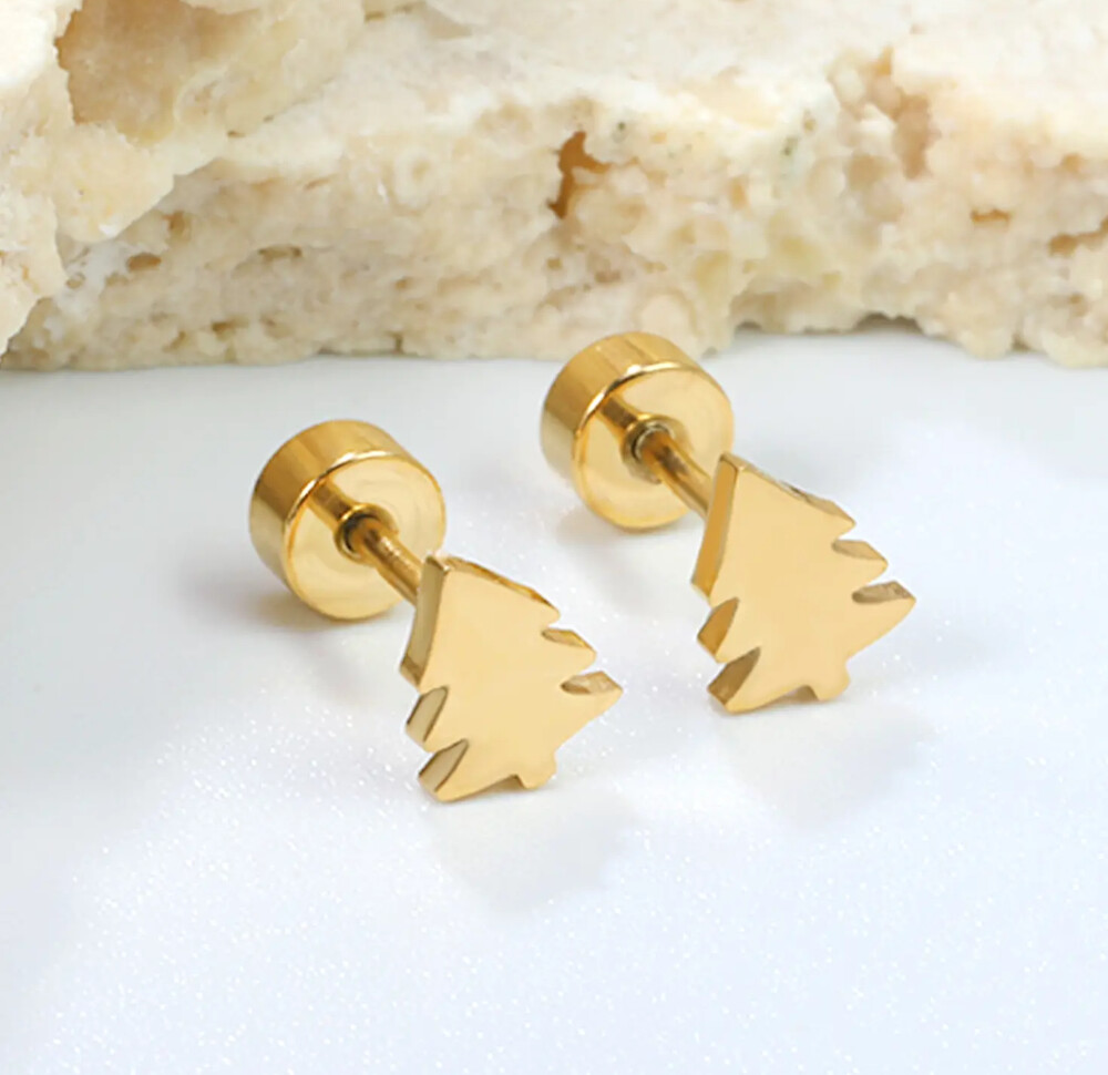 Новорічна, різдвяна тема сережки цвяшки форма ялинка, медзолото, медсталь