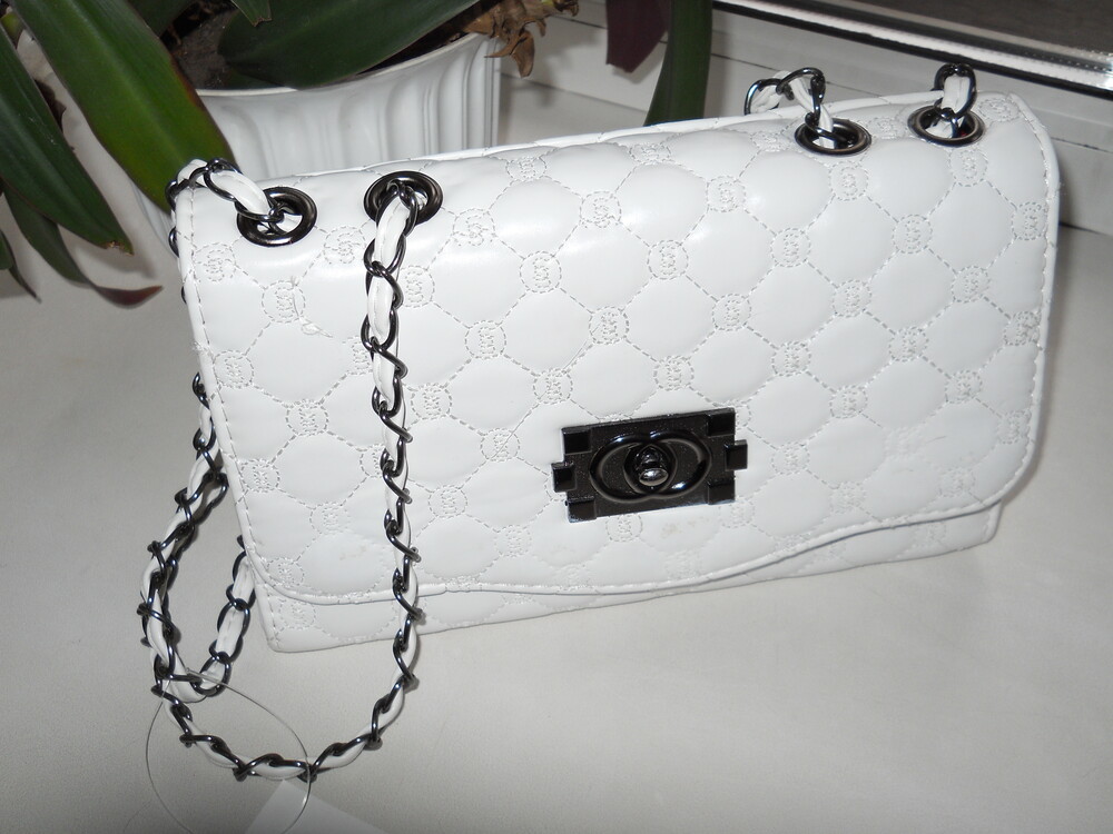 Шикарная женская сумочка . длина-25см висота15см дно-8см цвет белый имеет 2 отделения перегородка на молнии сбоку кармашек на молнии. длинная ручка.