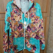 красивая ветровка, весна лето,приятная к телу,мне пришла мала.ог 60см,дл 72см рукав 75 от шеи и обб .56см ,цена,как на сайте