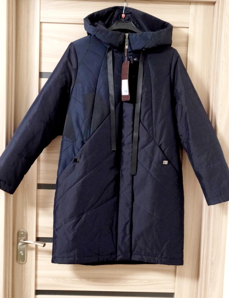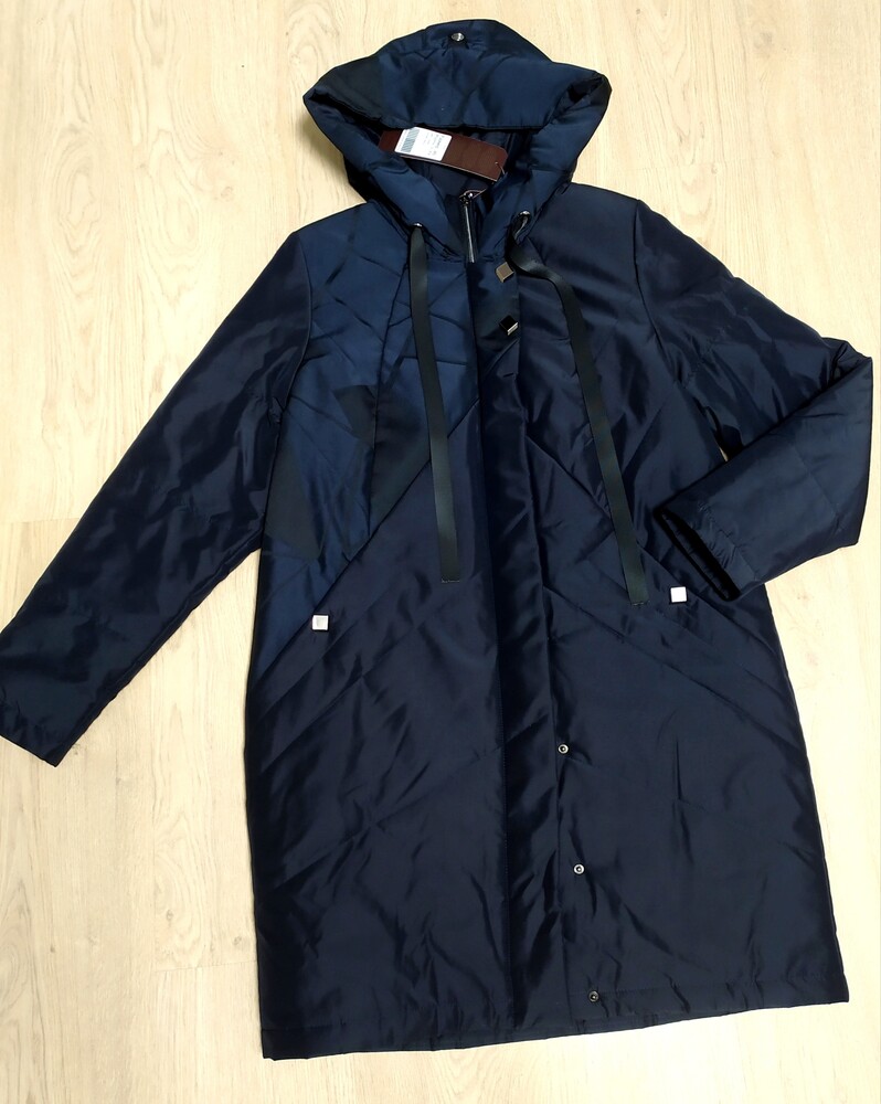 Куртка подовженої моделі з капюшоном.