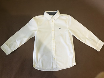 Белые рубашки с длинным рукавом ТМ Бебепа , состав 80% хлопок 20% полиестр. Размеры: первая цифра обхват шеи, вторая цифра рост. Есть 30/122 см;