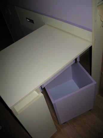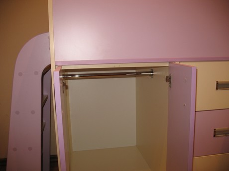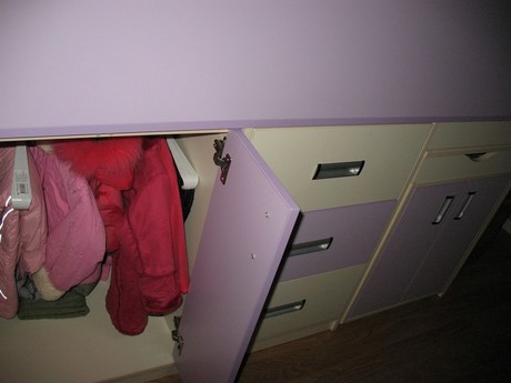 2) вместо комода-ступенек сделали ооочень глубокий шкаф с двумя дверцами, днищем, штангой внутри для верхней одежды