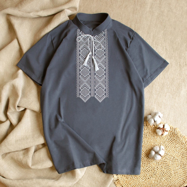 шукаю таку трикотажну, сіру з білою вишивкою, вишиванку чоловічу, розмір Л, ХЛ.