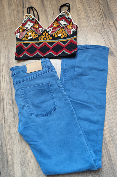 зручні, гарні, насиченого кольору скінні Zara (довжина 100, кроковий 75см, пояс півобхват 38, добре тягнеться, поб 44, добре тягнеться,розмір 36) та неймовірно гарний, елегантний топ Zara - в комплекті виглядає просто супер. Попрошу на пакування20