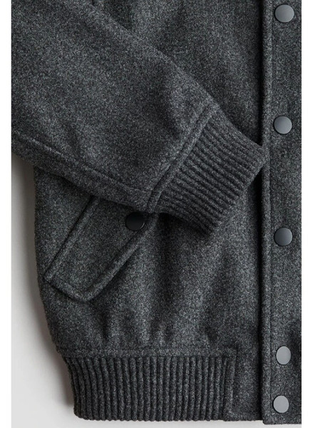 Куртка-бомбер із м´якої фетрової тканини. Горловина, манжети рукавів та низ виробу виконані еластичною щільною гумкою. Застібається за допомогою кнопок. Кишені з клапаном та застібкою-кнопкою, Всередині на поліестровій підкладці. Машинне прання при 40 °.