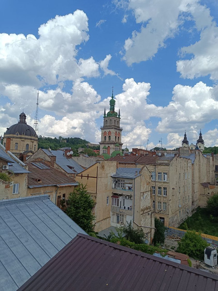 Через те, що Ратуша і Високий замок зараз закриті для відвідувань, то шукала хоч якусь альтерантиву для гарного виду. Знайшла 3 локації: тераса на верхньому поверсі Майстерні шоколаду, меморіал Небесної сотні і верхній поверх ТЦ Вернісаж Lviv Mall
