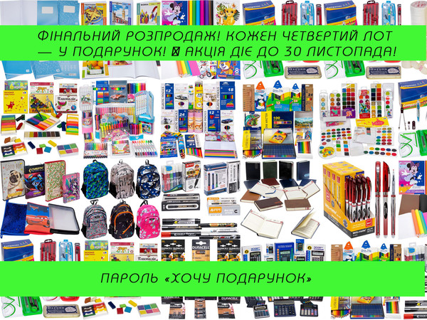 Щоб скористатися акцією, просто додайте бажані товари та канцтовари до кошика або напишіть мені, які саме лоти Ви обрали.
