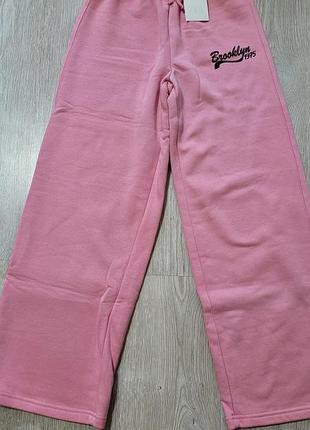 Широкие плюшевые брюки с эластичным поясом и шнурками для регулировки спереди. Надпись спереди. Теплая мягкая поверхность внутри.Цвет розовый.Размер - 13/14 лет.