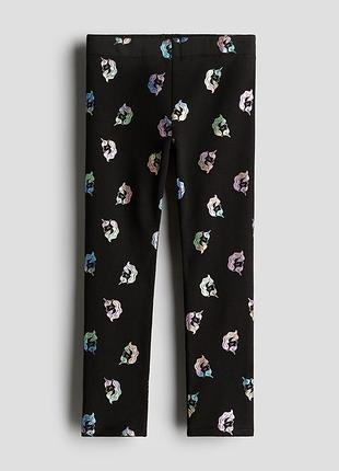 Красивые леггинсы Н&М для девочек . Верхь- хлопок , внутри мягкая баечка, в поясе резиночка для регулировки, украшенные цветными принтами.Размер 140 см на 9 - 10 лет.