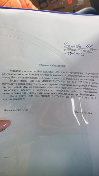 У нас прильот... З цих слів все почалося. 14.11.25 ворожий дрон розділив будинок навпіл, а наше життя ще раз на до і після. Знову. В 2022 ми з чоловіком виїхали з окупованої Херсонської області і почали будувати життя, на збереження купили квартиру в Києві, маленьку але свою. Не хотіли бути тягарем. Помаленьку якось собі жили, на їжу і ліки вистачало. Але 14.11 підчас атаки дрон знищив наш маленький світ і ми лишилися без нічого, вспіли вискочити з квартири з песиком і документами. Обіцяють виплати, документи подаємо де тільки можна, але то все "пізніше", "чекайте", квартира в стані критичним, непридатним до життя. Прошу всіх хто має можливість і бажання допомогти нам протриматися хоча б до перших виплат, зняти квартиру, зараз живемо у чужих людей які нас прихистили. Висновки і акти зруйнованого мешкання можу показати в приватному повідомленні