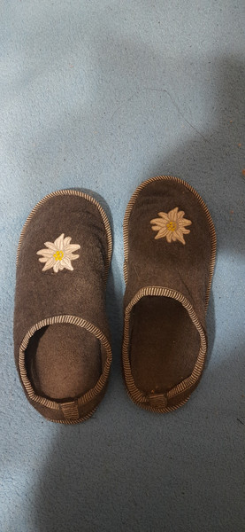 Домашні капці, матеріал щось на кшталт фетру, підошва така ж, по устілці пр.27 см. Стан хороший