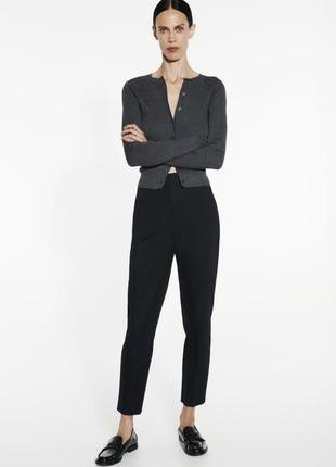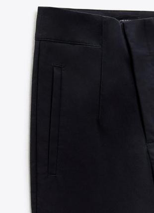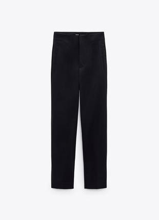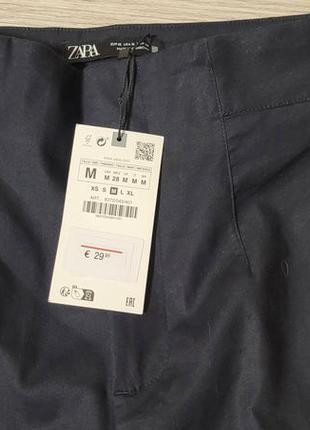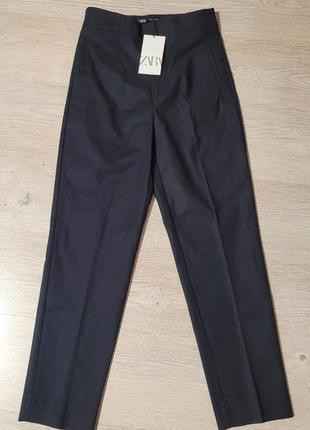 Брюки Zara размер М.Темно- синие.Очень хорошо садятся.Состав : 69% хлопок, 27% полиэстер,4% эластанБрюки с завышенной талией и передними карманами с прорезным вырезом. Прямая нога. Застежка-молния и металлический крючок спереди.