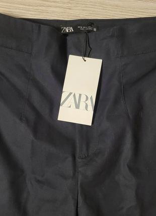 Брюки Zara размер М.Темно- синие.Очень хорошо садятся.Состав : 69% хлопок, 27% полиэстер,4% эластанБрюки с завышенной талией и передними карманами с прорезным вырезом. Прямая нога. Застежка-молния и металлический крючок спереди.