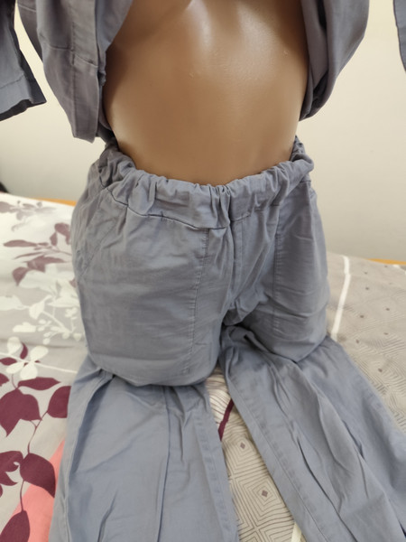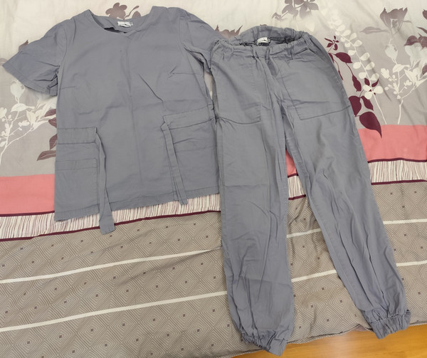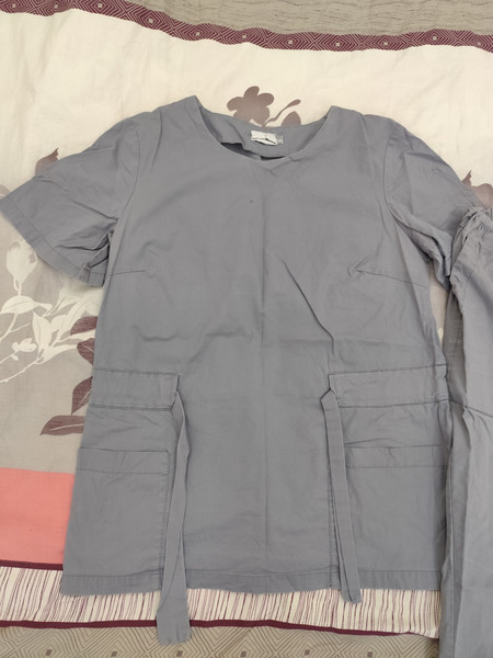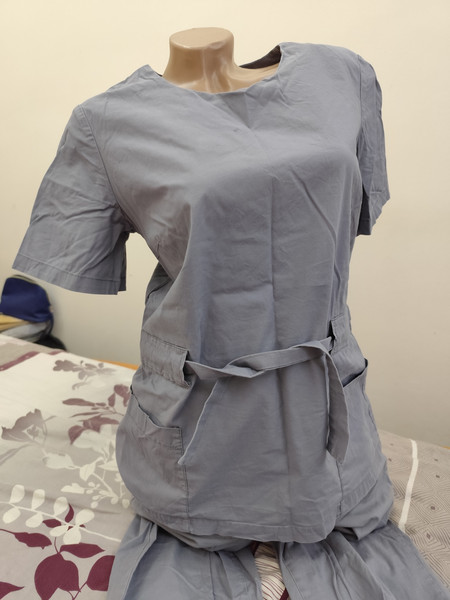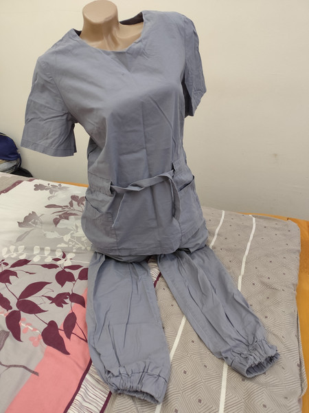 Жіночий костюм з бавовни, гарний, приємний колір - трішки темніше на фото. Він як повсякденний, в можна і на працю мастеру, купувала не дешево. Стан дуже хороший, єдиний нюансик - плямка, яка не виводиться :( можна брошку причепити чи якийсь значок, може хустку, якщо носете її по типу краватки і воно буде непомітним. Розмір Л, на мої параметри пог104, пот92, поб110 сідає добре, якщо в Вас меньше параметри - теж буде добре, трохи вільно, костюмчик цей взагалі класно стройнить, не знаю за рахунок чого, на брючках класна міцна , зручна гумка і добре розтягується, на кофті два коміра з боків. Попрошу на пакування