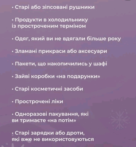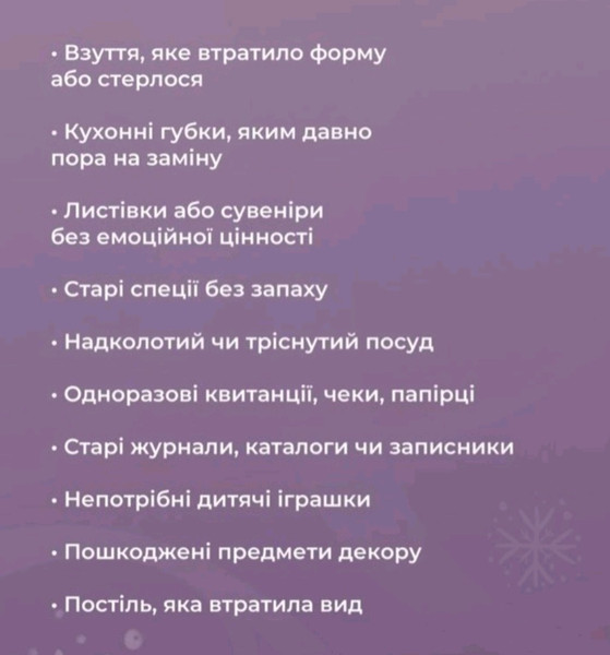 Я це робила в листопаді. Викинула дуже багато речей. Потім зайшла по крупному: диван, посудомийку, тумби і стіл. Тепер мене чекатимуть нові покупки.