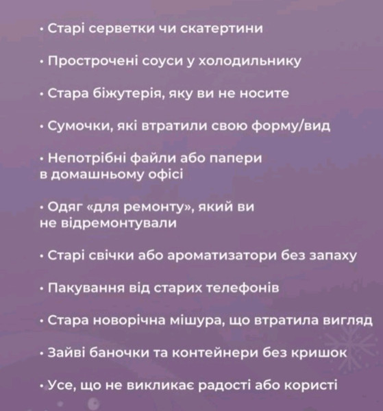 А так сама ідея цікава! Кажуть, чим від більших речей ти позбавишся, тіпа простір свій "почистиш", тим більше нових речей навпаки "прийдуть" до тебе)
