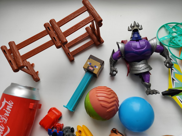 у чудовиська загублена нога, але сама іграшка якісна, класна, на тині теж зламана і загублена деталь - складається-розкладається, типу конструктора, деякі Кіндер не комплекті, в цілому все інше в гарному стані. Магнітна рибалка, пістолет працює. На пакування25