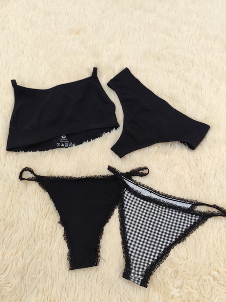 нова білизна, вказано М, як і замовляла, по факту С, навіть міряти не стала, бо візуально все мале :( матеріал дуже приємний м'який, комплект топ+трусики з модного "рубчика". Попрошу на пакування