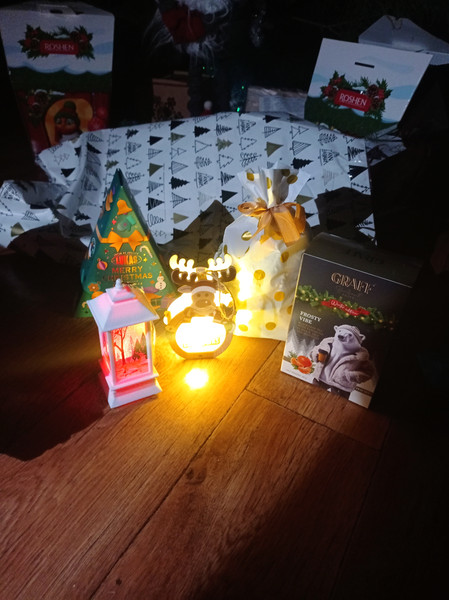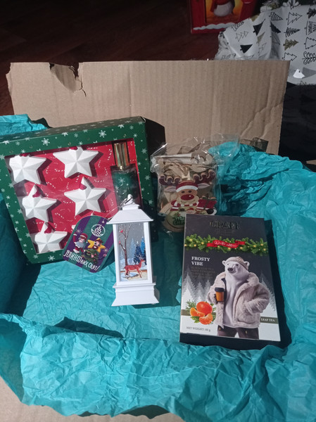 :chocolate_bar: Відкриваю — а всередині справжній солодкий кайф :yum:Цукерки,смаколики ,іграшка, чай, новорічний світильник— усе підібрано дуже вдало, так, що хочеться і сфоткати, і скуштувати одразу.