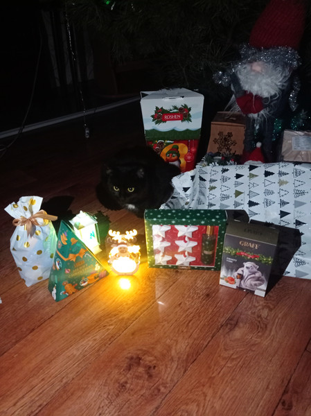 Щиро дякую. Кішка то наша 3- тя донька:rofl:. В мішочку там цукерки, а зірочки то мабуть ароматні воскові зірочки. Но я ще не розпаковувала. Вітаю Вас з святами! Нехай Ваші бажання здійснюються!