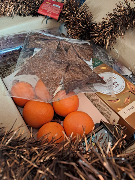 А що в тій коробочці між мандаринками і новорічним дощиком?