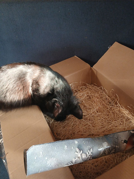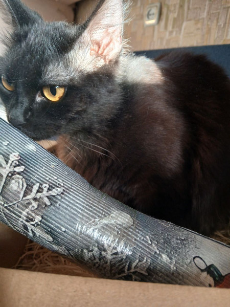 Некваплячмсь ,ми з доньками тішилися чарівними дарами.А Марсель інспектував зручненький новий"котячий будиночок"