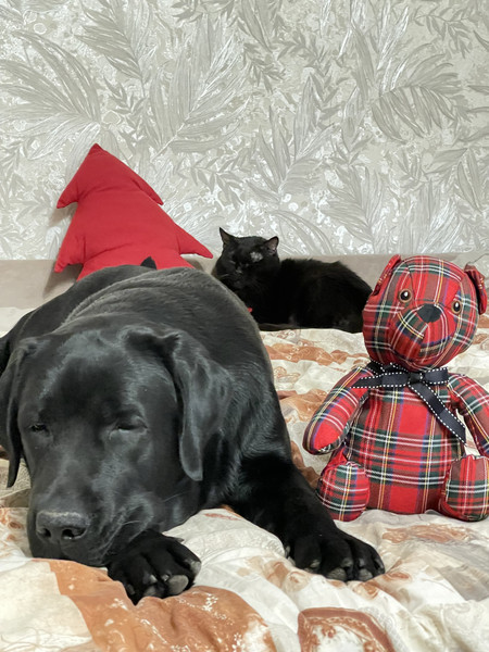 Лесю, вітаю Вас, енергія іде на енергію))). Мені Ваш огляд і подарунок такий трохи кінематографічний вийшов. Чорна - чорна собака із людськими очима, кіт на червоно червоній подушці, ведмідь, який трохи хорорний з чорним бантиком, який переміщається по кадру, і вночі прийде до тебе в ліжко, китайські печенюхи побажання, які виконують бажання, і на задньому фоні штори, які підкреслюють все це дійство. Чистий Твін Пікс, ще музичка і отвал башкі буде. Театрально получилось, з подарунком вітаю, спокійного Нового Року бажаю.