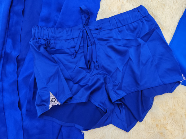 шорти та майка абсолютно нові - купила під халат, в мені подарували комплект, тому так і лежить. Халат хоч і б/в, але вдягала мало, він без нюансів зі зручним поясом.