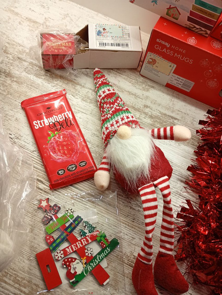 Цукерки,чай, новорічний посуд музична шкатулка,гномик)), все гармонічно і дуже гарне )
