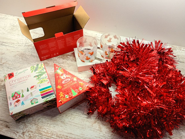 Прийшла така чудова коробка, в гарному новорічному кольорі...в далі дуже багато подарунків