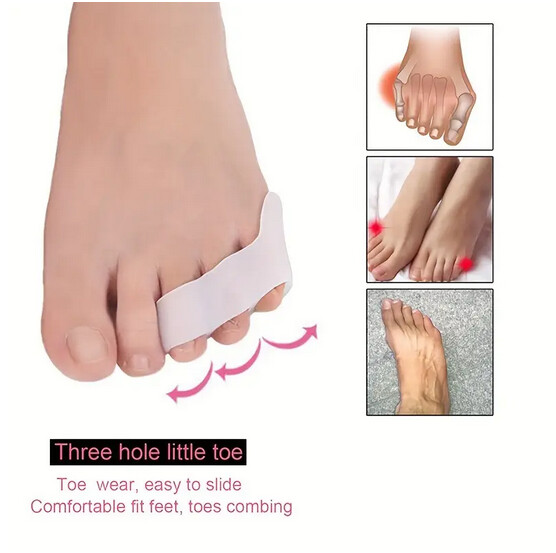 [Дизайн с 3 отверстиями]: разделители для мизинцев имеют три отверстия, чтобы пальцы ног оставались в нужном месте и не могли легко соскальзывать. Специальная конструкция обеспечивает дополнительную защиту для мизинца. Он создает некоторое расстояние между мизинцем и соседними пальцами и разделяет перекрывающиеся пальцы, чтобы предотвратить натирание и раздражение кожи