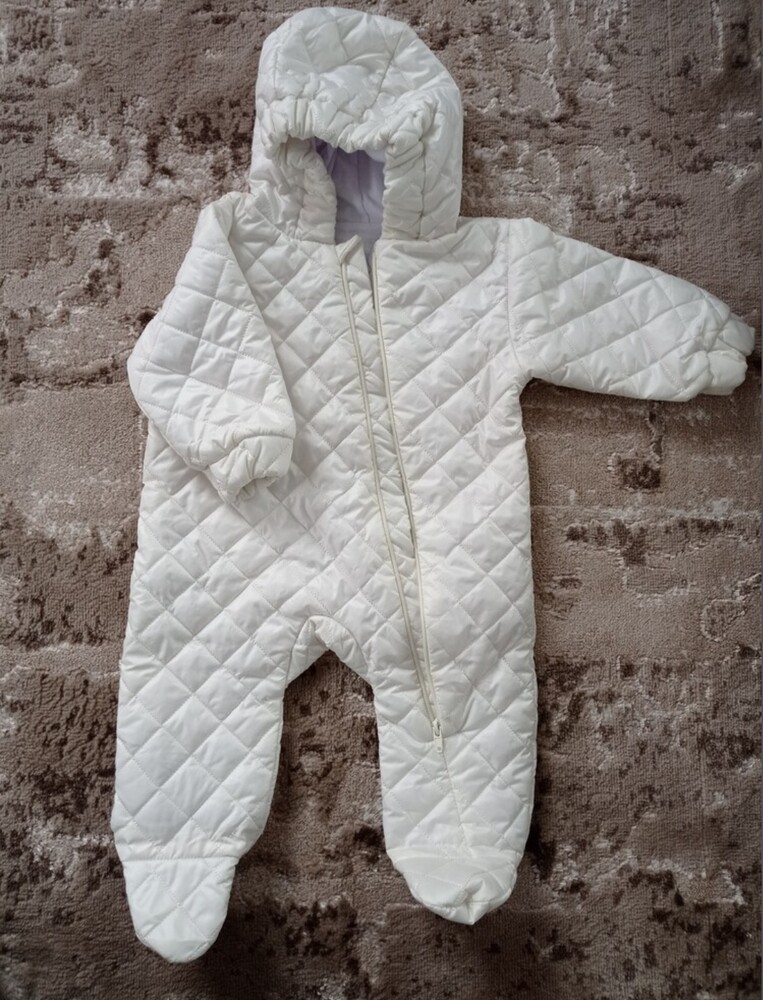 Комбінезон на замочку, з капюшоном демісезонний, прошитий є тоненький сінтепон,підійде для хлопчика і дівчинки, суцільний, стан нового. Довжина від плеча до п'ятки 58 см, половина ширини 33 см, рукав від плеча 26см, ніжка 13 см
