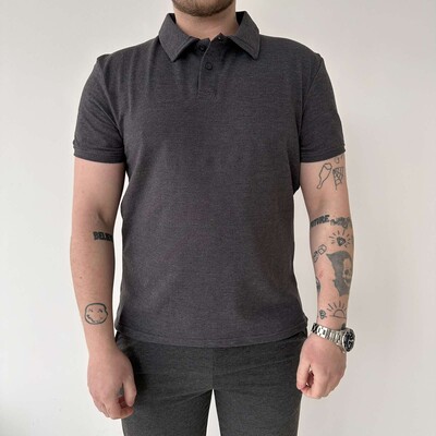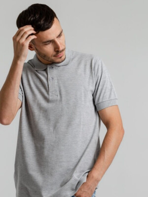 ⇑ Футболка-поло з чистої бавовни в піке, світло-сірий меланж, рр. М-2ХЛ на вибір