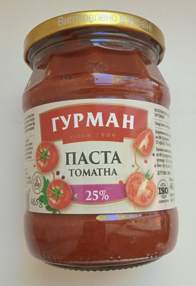 * Томатная паста "Гурман", 25%, сорт высший, стерилизованная, Украина - 465грм,