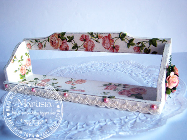 Ну тут все просто - декупаж, кружево, цветы, полубусины.