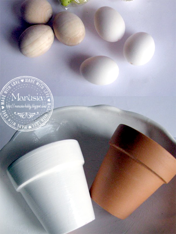 Этап 1. Подготавливаем заготовки - выдуваем, вымываем и высушиваем куриное яйцо, покрываем краской. Горшочек тоже красим белой акриловой краской. Оставляем сохнуть.