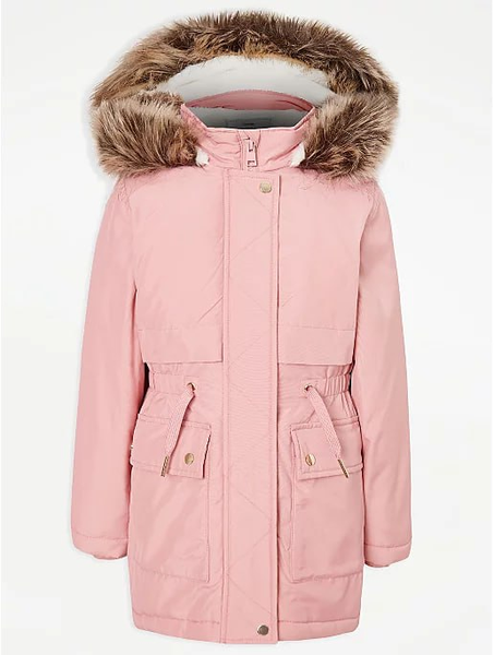 Рожева парка з капюшоном, спинка на хутрі, Джордж, 12-13 ( 152-158см ) =900 грн