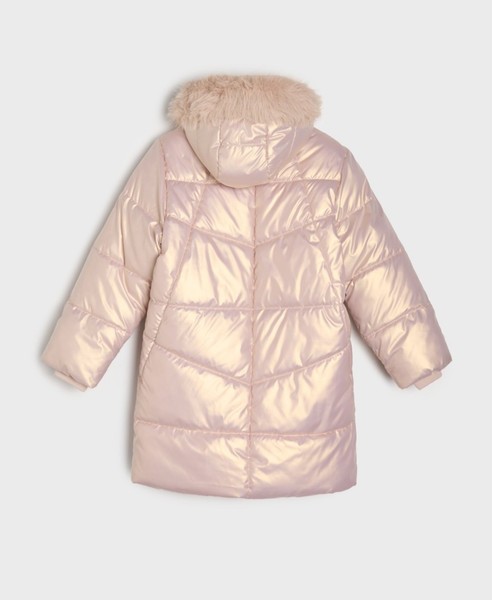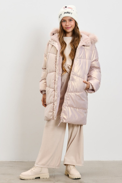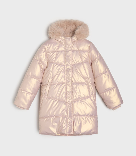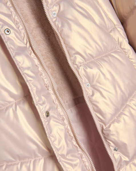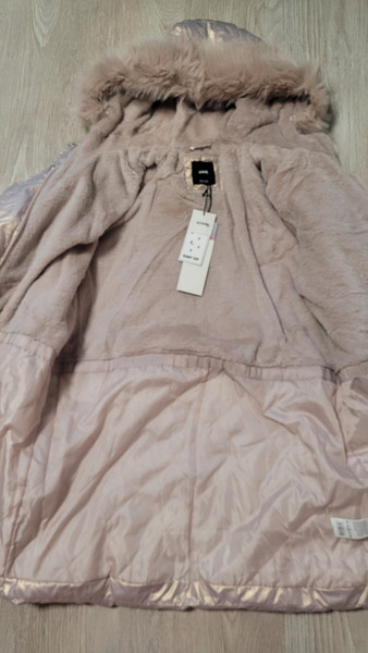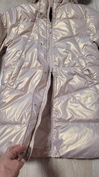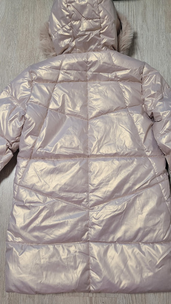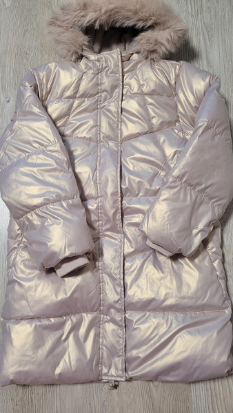 Дуже красиве і тепле пальто для дівчинки. Колір - рожеве золото.Розмір - на зріст 152 см.Прихована планка.Розтібається і знизу також, що дуже зручно. Водовідштовхувальний матеріал