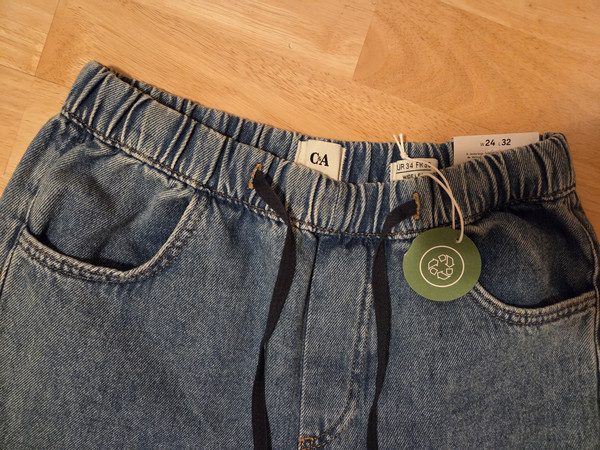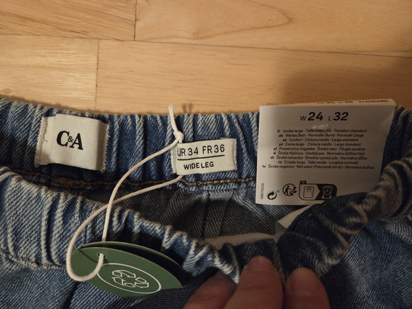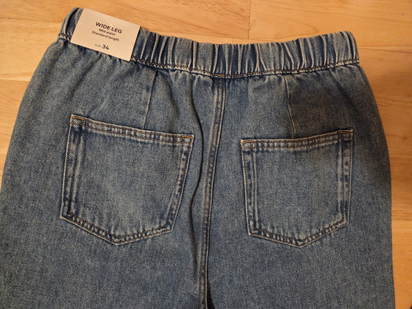 Джинси від С&А. Широкі, прямі. Колір - синій. Розмір 34/36. Нові, з этикеткою. Актуальна модель цього сезону.100% коттон.Заміри: довжина загальна - 101 см,шаг- 81 см, ширина (стегна) - 50 см,