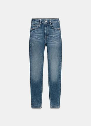 Джинси з надзвичайно еластичної тканини з високою посадкою та п’ятьма кишенями. Застібка спереду на блискавку та металевий ґудзик.38 розмірІдеально сідають по фігурі